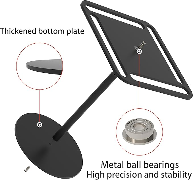 Silent and smooth bearing rotation with a weighted base ensures stability and prevents tipping.