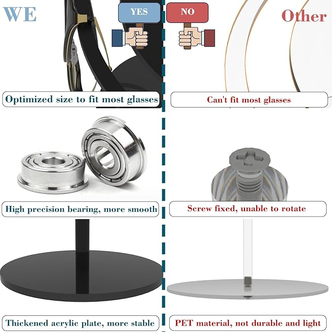 Quick and simple assembly with provided hardware; ideal for various sunglasses and saves desk space.